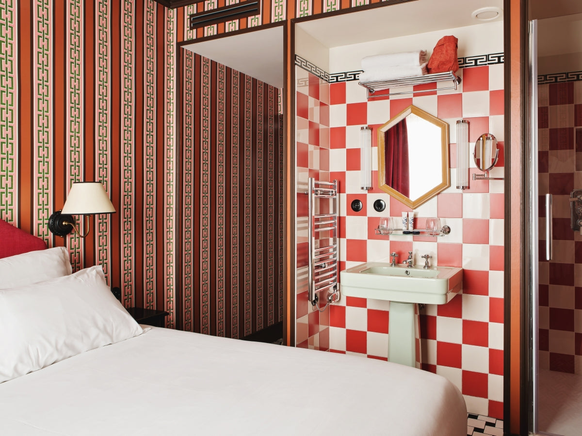 Entre la Gare du Nord et la Gare de l’Est. Un immeuble bourgeois décoré par le designer anglais Luke Edward Hall invite le voyageur à poser ses valises.